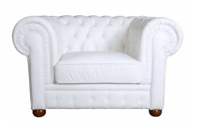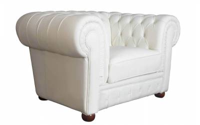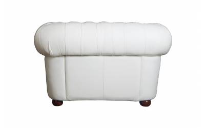 При знакомстве с креслом Chesterfield из коллекции «Честер» сразу бросается в глаза одно из главных его достоинств – изумительный белый цвет. Он позволяет без проблем поместить эту вещь в любой интерьер: она одинаково гармонично впишется в светлую комнату и оживит темную. И не беспокойтесь, что на белой обивке быстро появятся пятна: высококачественная кожа успешно противостоит загрязнениям.