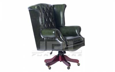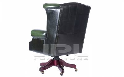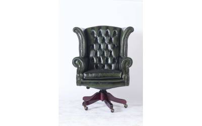 Рабочее кресло на деревянном каркасе из массива ясеня, обтянуто натуральной кожей с эффектом старения. Под заказ возможны другие варианты отделки.
