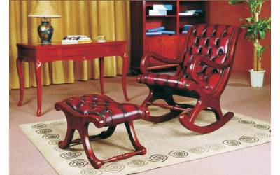 Кресло-качалка выполнено в стиле диванов честер. Его отличают: