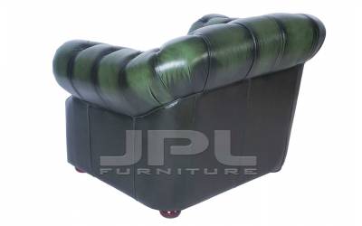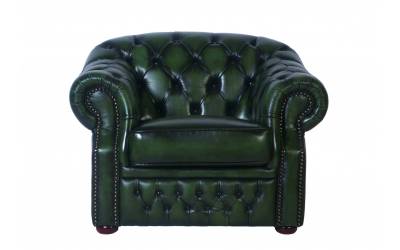 Кожаное кресло в английском стиле Chesterfield. Обтянуто натуральной кожей буйвола с эффектом старения, украшено каретной стяжкой, подбито по периметру мебельными гвоздями - ручная работа. Каркас - массив ясеня, наполнитель Сендвич (синтепон в сочетании с полиуретаном). Цвет зеленый состаренный. На заказ возможны другие варианты отделки.