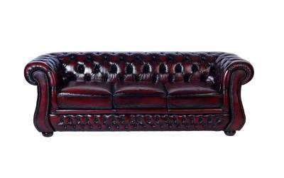 Трехместный кожаный диван Vermont выполнен в традиционном английском стиле, обтянут состаренной натуральной кожей крупно-рогатого скота, декорирован латунными гвоздиками. Наполнитель-латексный ППУ. Каркас из массива сосны. На заказ доступны другие варианты отделки.
