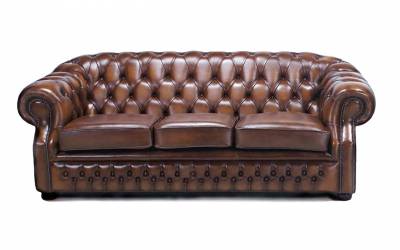 Трехместный кожаный диван Vermont выполнен в традиционном английском стиле, обтянут состаренной натуральной кожей крупно-рогатого скота, декорирован латунными гвоздиками. Наполнитель-латексный ППУ. Каркас из массива сосны. На заказ доступны другие варианты отделки.