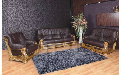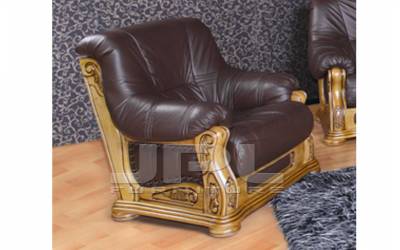 В основе комплекта Alexis – массив ясеня ручной работы. Натуральная кожа насыщенного коричневого цвета грамотно скомбинирована с дорогим деревом. Отдельного внимания заслуживают резные элементы – настоящее украшение гарнитура. Они как нельзя лучше впишутся в камерную атмосферу классического стиля.