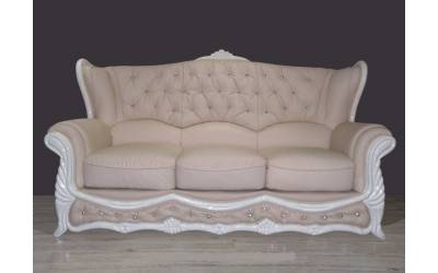 • Мягкая мебель выполнена в романтичном стиле. Спинка, подлокотники, декоративные элементы имеют художественное оформление. Спинки всей мебели украшены заклепками, образующими легкие складки на коже и создающими на ней оригинальный узор.