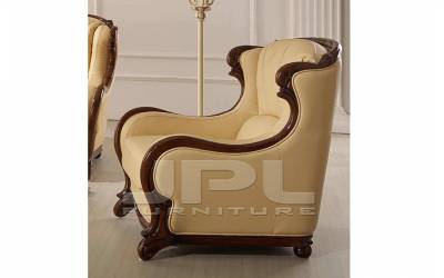 Кресло А-105 обито натуральной кожей и украшено декором из массива ясеня. Это кресло можно дополнить 2 или 3-местным диваном из серии А-105 либо поставить отдельно. Оно впишется в классический интерьер гостиной, рабочего кабинета, холла.