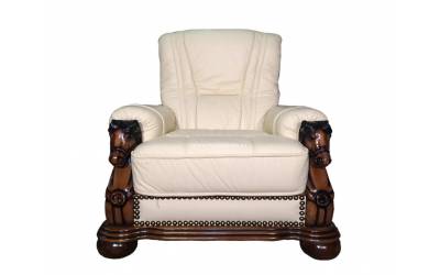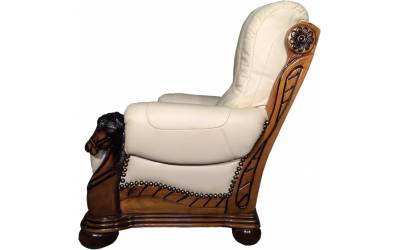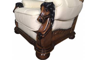 • Широкие подлокотники из полированного дерева в форме лошадиной головы.