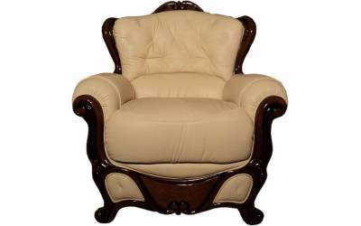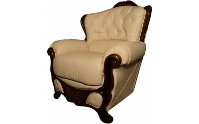 Шикарная бразильская кожа высокого качества призывно обтягивает все мягкие части изделия. Резной декор из натуральной древесины обеспечивает этой элегантной мягкой мебели особую декоративность, прочность и долговечность.