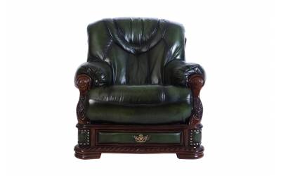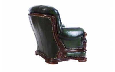 Кожаное кресло в английском стиле Chesterfield. Обтянуто натуральной кожей буйвола с эффектом старения, украшено каретной стяжкой - ручная работа. Каркас - массив ясеня, наполнитель Сендвич (синтепон в сочетании с полиуретаном). Цвет зеленый состаренный. На заказ возможны другие варианты отделки.