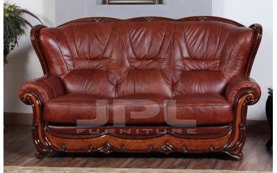 Края и верх спинки, а также подлокотники и основание конструкции украшает резной декор. Он мастерски выполнен из массива ясеня и покрыт качественным лаком. Поэтому такая искусная отделка придает массивному трехместному дивану легкость и особый шарм.
