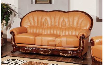 Диван изготовлен полностью из натуральной кожи. Наполнитель-латексный ППУ. Каркас-массив сосны. Деревянный декор-массив ясеня. Цвет кожи на выбор.