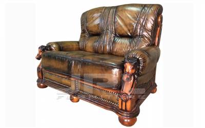 Диван изготовлен полностью из натуральной кожи. Наполнитель-латексный ППУ. Деревянный декор-массив ясеня. В диван может быть установлен механизм трансформации "спартак". Стоимость уточняйте у менеджера. Цвет кожи на выбор.