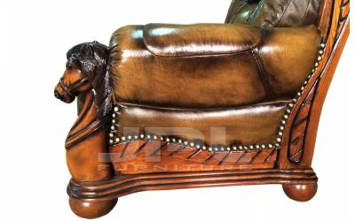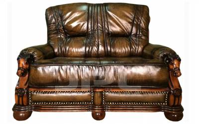 По функциональности этот диван, возможно, уступает некоторым моделям, но в данном случае на первом плане – эстетика и оригинальный внешний вид. Деревянные «колонны» в виде лошадиных голов стали визитной карточкой изделия. В такой «упряжке» будешь чувствовать себя уверенным, защищенным и спокойным.
