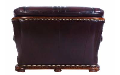 Диван изготовлен полностью из натуральной кожи. Наполнитель-латексный ППУ. Деревянный декор-массив ясеня. В диван может быть установлен механизм трансформации "спартак". Стоимость уточняйте у менеджера. Цвет кожи на выбор.