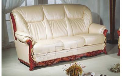 Обивка из натуральной кожи молочного цвета, богатый декор из отполированного ясеня, художественная резьба — все это создает ощущение достатка и респектабельности. Мягкие, двухслойные подлокотники с легким закруглением и плавными изгибами полностью повторяют форму рук. Высокая спинка со специальной стяжкой и большие подушки сидения придают модели ощущение невероятной комфортности.