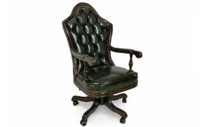 Рабочее кресло на деревянном каркасе из массива ясеня, обтянуто натуральной кожей с эффектом старения. Под заказ возможны другие варианты отделки.
