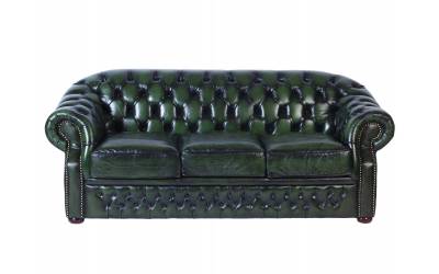Оригинальный кожаный диван Chesterfield выполнен в традиционном английском стиле, ручная работа. Обивка из натуральной кожи буйвола высшего качество. Спинка украшена в технике каретной стяжки, темно-зеленый цвет состарен. Каркас из массива ясеня. Под заказ доступен вариант со встроенным спальным местом, размер 140*195 см. Наличие других вариантов отделки, уточняйте у менеджера.