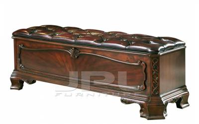 Эта банкетка – достойная конкурентка экспонатов, выставленных в знаменитом Императорском музее мебели, что находится в Вене. Декоративные накладки выполнены вручную. Каждый элемент – результат кропотливого труда талантливого мастера, вложившего в свою работу всю душу. Верхняя накладка передней части дополнена шикарной короной, боковые рельефные узоры витиеватой формы служат в качестве дополнения к основным деталям декора. Особый шик банкетке придают срезанные углы, оформленные искусной резьбой. Сложный узор вырезан вручную, это высший пилотаж мастерства.