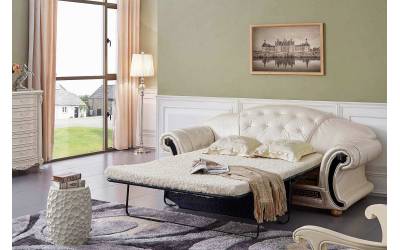 100% натуральная кожа. Деревянный декор-массив ясеня. Наполнитель-латексный ППУ и холлофайбер. Без спального места.