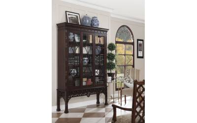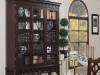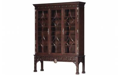 Деревянный книжный шкаф с открытыми полками, выполнен в американском стиле, украшен резными пилястрами и карнизом ручной работы.