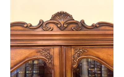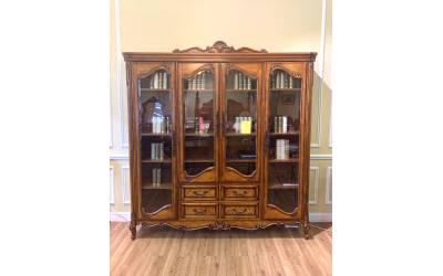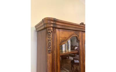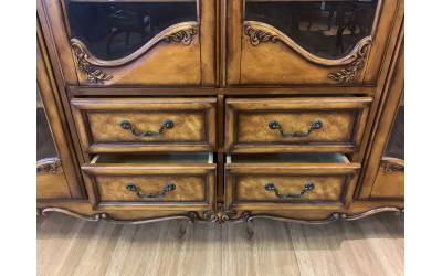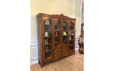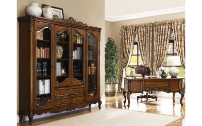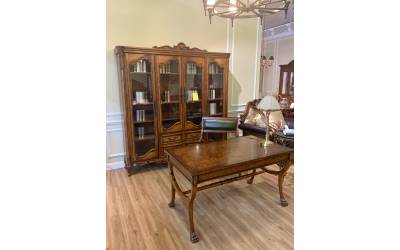 Классический письменный стол из массива ореха, украшен резьбой ручной работы, отделан кучерявым шпоном. Имеет пять выдвижных ящиков с плавным ходом. Доступны другие варианты отделки.