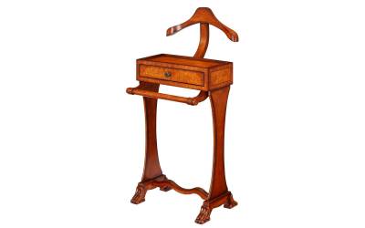 Стильная и функциональная напольная вешалка Windsor, на ней можно хранить пиджак, брюки и галстук, имеет ящик для мелочей. Изготовлена из массива ореха и украшена инкрустацией. Под заказ возможны другие варианты отделки.