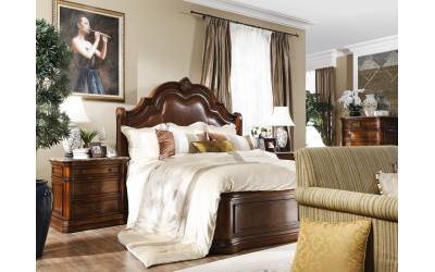 Классическая кровать с мягким изголовьем из натуральной кожи КРС. Резной каркас изготовлен из массива черной березы, отделам в цвет рыжего ореха с эффектом старения. Спальное место 150*200см. Под заказы доступны другие варианты отделки.
