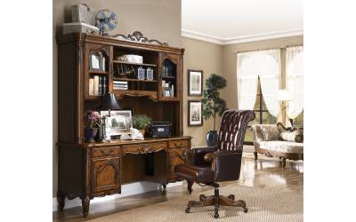 Классический письменный стол из массива ореха, украшен резьбой ручной работы, отделан кучерявым шпоном. Имеет пять выдвижных ящиков с плавным ходом. Доступны другие варианты отделки.