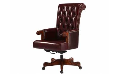 Рабочее кресло на деревянном каркасе из массива ясеня, обтянуто натуральной кожей с эффектом старения. Под заказ возможны другие варианты отделки.