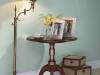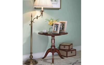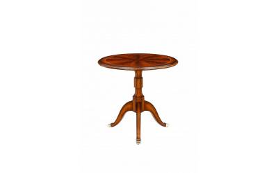 Кофейный стол из пламенного махагоня в английском стиле, тройная ножка украшена металлическими наконечниками.