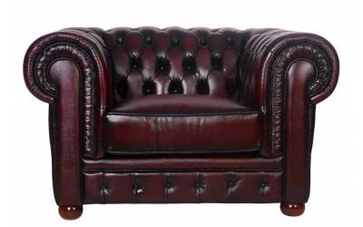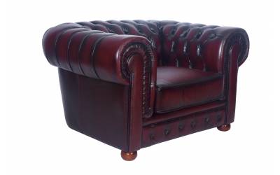 Кожаное кресло в английском стиле Chesterfield. Обтянуто натуральной кожей буйвола с эффектом старения, украшено каретной стяжкой - ручная работа. Каркас - массив ясеня, наполнитель Сендвич (синтепон в сочетании с полиуретаном). Цвет винный состаренный. На заказ возможны другие варианты отделки.