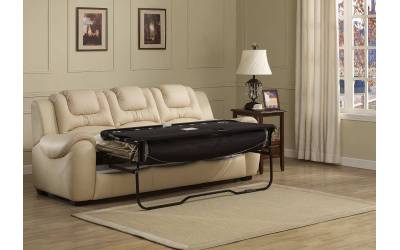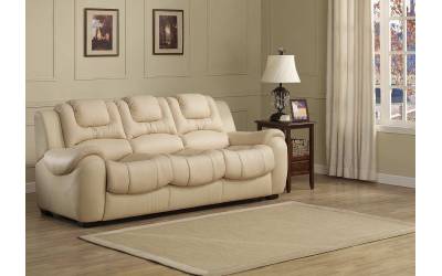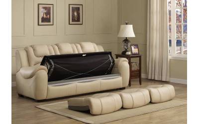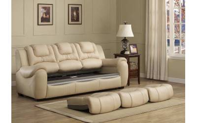 На этот раз производитель выполнил изделия в бежевой коже. Такое решение наверняка понравится каждому, кто ценит легкость и ощущение простора. А теперь подробнее о каждой единице мебели, которая входит в комплект:
