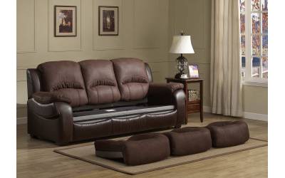 Если вы хотите не только купить кожаное кресло, а и обзавестись диваном такого же стиля, почему бы ни обратить внимание на этот комплект? Производитель выполнил его с использованием двух роскошных материалов – натуральной кожи и алькантары. Они сочетаются между собой как нельзя лучше, при этом хорошо проявляют себя в эксплуатации и долго сохраняют первоначальную красоту.