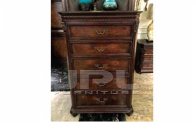 • Один из комодов украшен большим зеркалом правильной прямоугольной формы с резными украшениями вверху.
