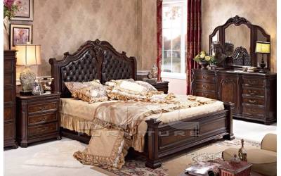 • Особого внимания заслуживает шикарная двуспальная кровать, выполненная из темного дерева, как и остальные элементы гарнитура. Лишь единожды увидев ее, вы вряд ли сможете отказать себе в таком удовольствии, которое останется с вами на долгие годы!