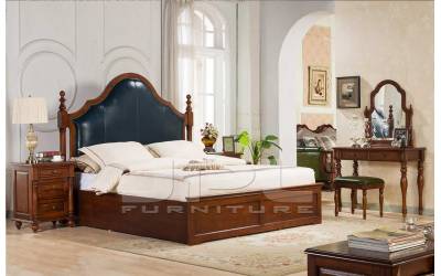 Мебель изготовлена из массива гевеи. В изголовье кровати используется натуральная кожа высшей категории. Цена указана за двухспальную кровать.