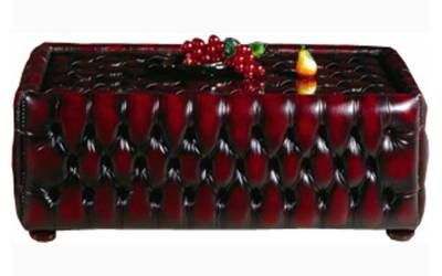 Кожаный приставной стол Chesterfield Collection, обтянут натуральной кожей, украшен каретной стяжкой. Столешница из закаленного стекла, закругленные углы.