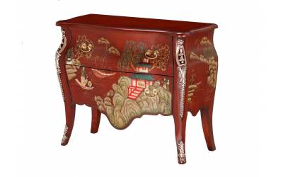 Традиционный китайский расписной комод, выполнен в стиле шинуазри из дерева. Имеет 12 отделении, отделан черным лаком и украшен пейзажем ручной работы "бабочки на розах".