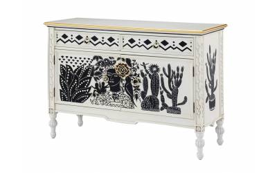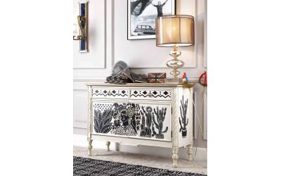 Расписной комод с каменной столешницей, выполнен в колониальном стиле из массива березы. Роспись ручной работы, украшен по технологии «crack», - в переводе с английского «трещины», - добавляет предмету ощущение долгой истории и старины.