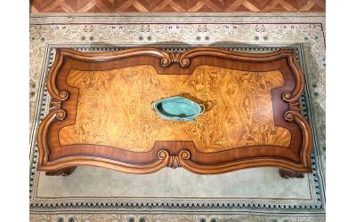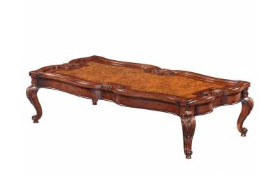 Роскошный коктейльный стол в стиле американской буржуазности. Выполнен по старинным чертежам XIX века и украшен вручную мастерами. Массивная столешница инкрустирована и украшена по периметру резными бортиками. Опирается стол на четыре резные ножки кабриоль. Коллекция Windsor – это пример адаптации роскошной элитной американской мебели к темпу современной жизни. Коктейльный стол доступен в нескольких размерах.